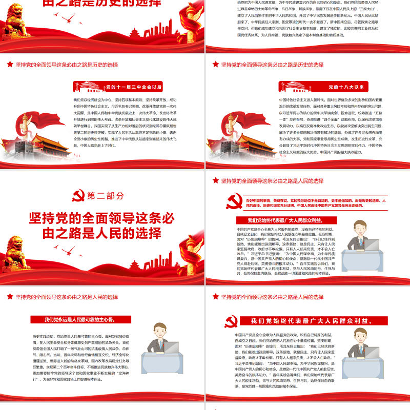 走好“五個必由之路”之堅持黨的全面領導PPT紅色黨政風深入學習五個“必由之路”系列黨課課件模板 Array