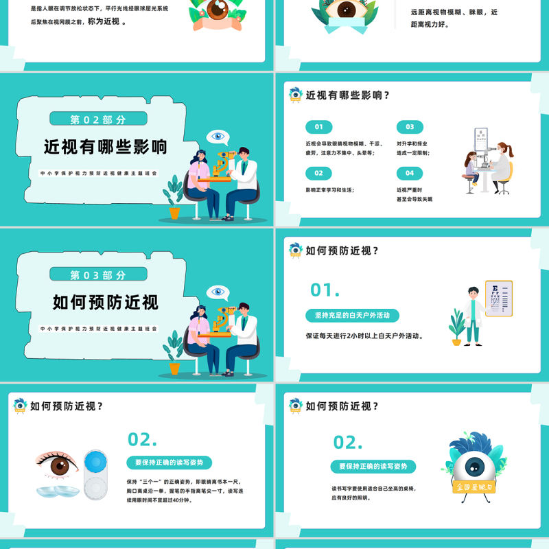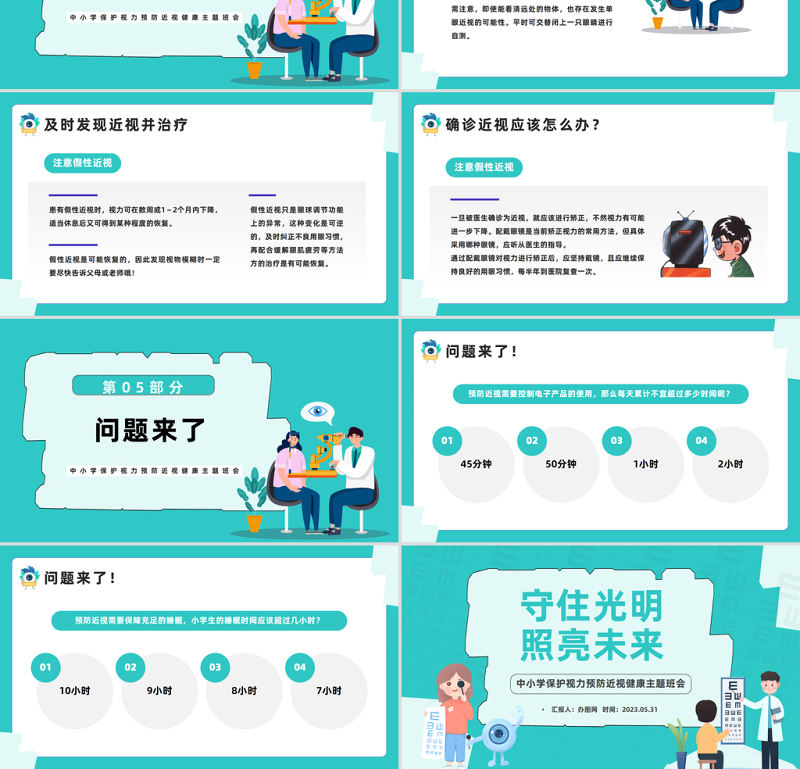 2023守住光明照亮未來PPT卡通風中小學生保護視力預防近視健康主題班會課件模板 Array