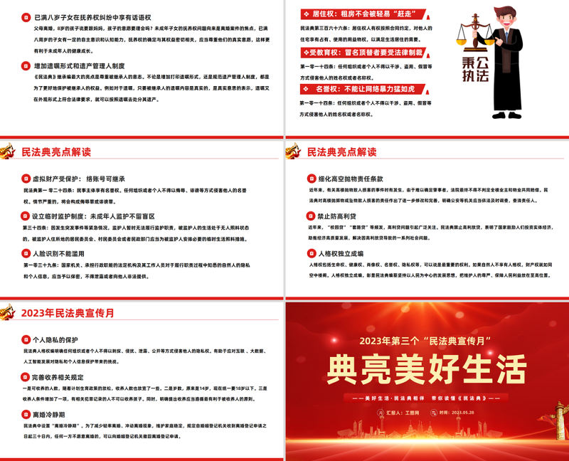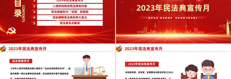 2023典亮美好生活PPT紅色精美風第三個民法典宣傳月專題黨課課件模板下載 Array