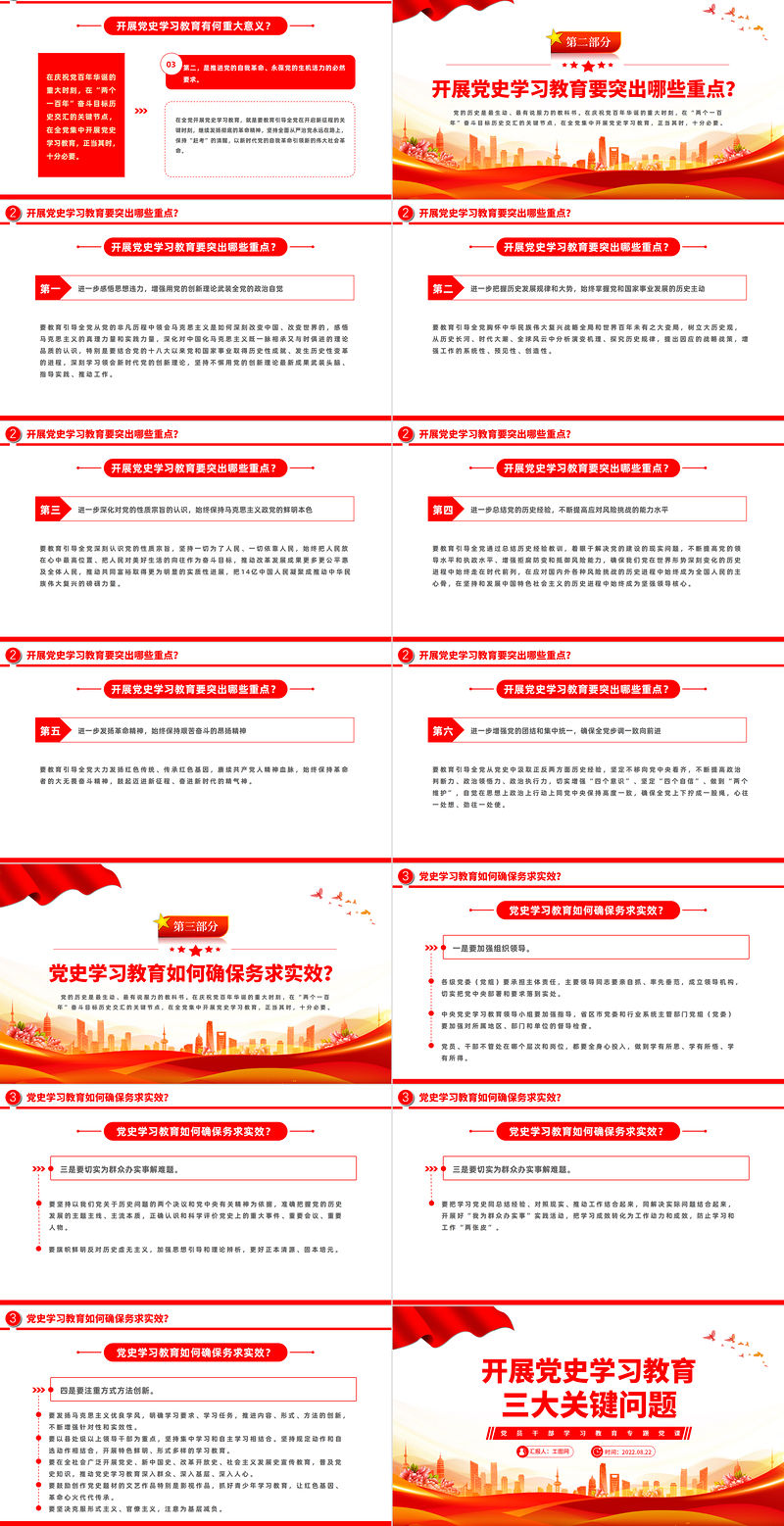 2022三大關鍵問題PPT紅色大氣風黨員干部開展黨史學習教育專題黨政黨建黨課課件模板下載 Array