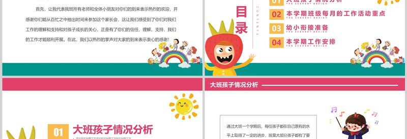 2022幼兒園大班期末家長會PPT幼兒園卡通手繪教育主題班會家長會課件模板