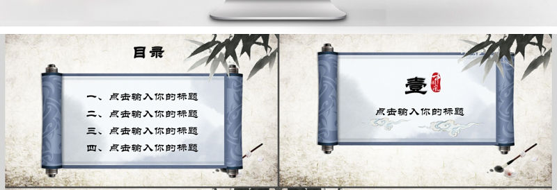 典雅中國風(fēng)古風(fēng)卷軸PPT動態(tài)通用背景模板