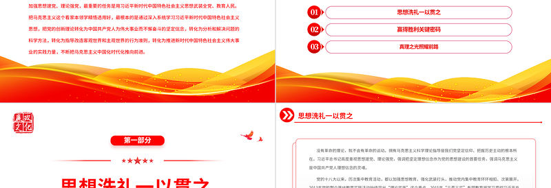 前言QIAN YAN 思想建設(shè)是黨的基礎(chǔ)性建設(shè),思想建黨、理論強(qiáng)黨是我們黨永葆生機(jī)活力的關(guān)鍵所在。進(jìn)入新時(shí)代,加強(qiáng)思想建黨、理論強(qiáng)黨,最重要的任務(wù)是用習(xí)近平新時(shí)代中國特色社會(huì)主義思想武裝全黨、教育人民。把馬克思主義這個(gè)看家本領(lǐng)學(xué)精悟透用好,最根本的是通過深入系統(tǒng)學(xué)習(xí)習(xí)近平新時(shí)代中國特色社會(huì)主義思想,把黨的創(chuàng)新理論轉(zhuǎn)化為中國共產(chǎn)黨人為偉大事業(yè)而不懈奮斗的堅(jiān)定信念,轉(zhuǎn)化為分析和解決問題的科學(xué)方法,轉(zhuǎn)化為指導(dǎo)改造客觀世界和主觀世界的行為準(zhǔn)則,轉(zhuǎn)化為推進(jìn)新時(shí)代中國特色社會(huì)主義偉大事業(yè)的實(shí)踐力量,不斷把馬克思主義中國化時(shí)代化推向前進(jìn)。