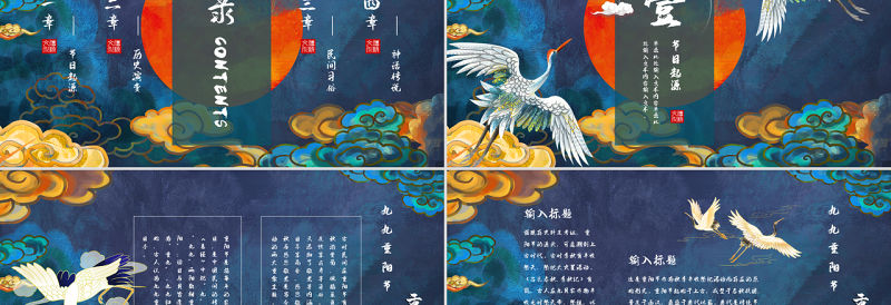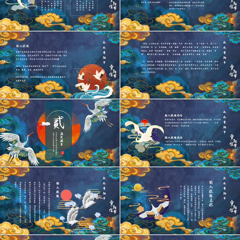 藍(lán)色,插畫風(fēng),手繪,國潮,重陽佳節(jié),九月初九,九九,重陽節(jié),傳統(tǒng)節(jié)日,中式,中國風(fēng),通用,PPT,模板 Array