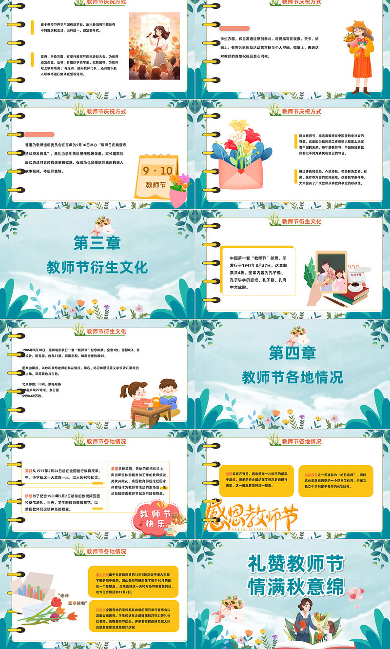 工圖網提供2023禮贊教師節情滿秋意綿PPT卡通風教師節快樂主題班會課件模板供會員免費下載。更多精彩黨課PPT素材,盡在工圖網。