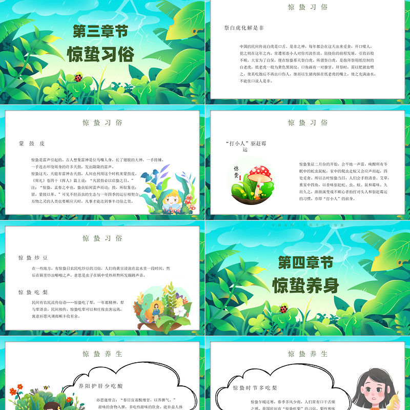 工圖網提供二十四節氣之驚蟄PPT綠色清新節氣介紹課件供會員免費下載。更多精彩黨課PPT素材,盡在工圖網。