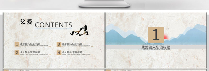 免費,PPT,ppt,素材設計,動態,動畫,設計,插畫風,父親節,清新,主題班會,小學生,低年級,感恩教育,節日慶典,父愛,親情,父親節快樂,老爸我愛你,父親節PPT模板,復古風,模板,青山,親節,紅日,演講模板 Array