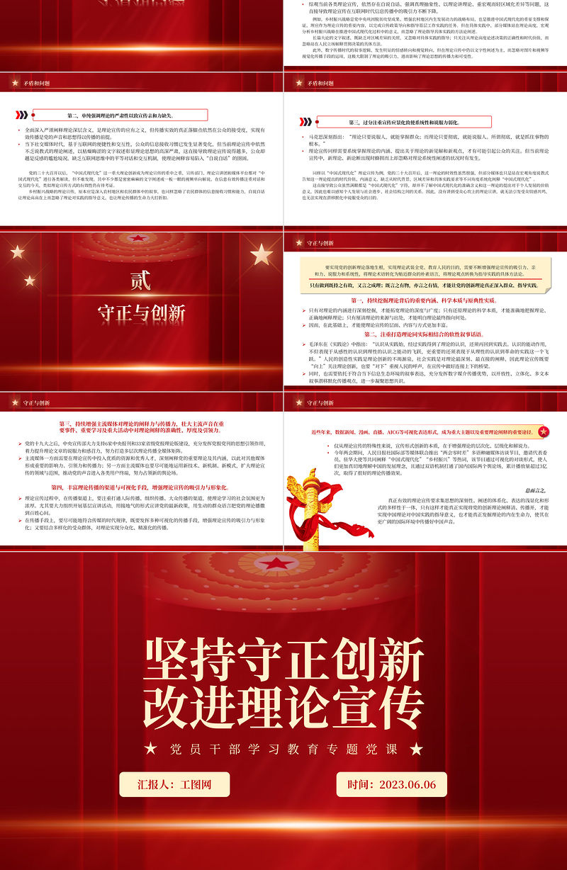 2023堅持守正創新改進理論宣傳PPT大氣精美風黨員干部學習教育專題黨課課件