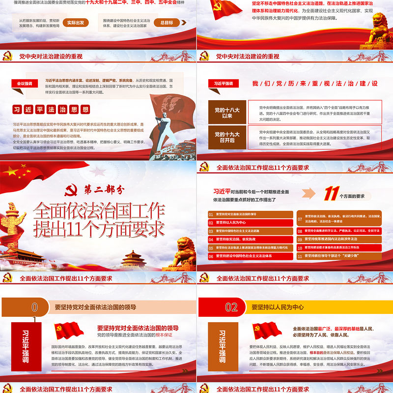 要堅持全面推進科學立法、嚴格執法、公正司法、全民守法。08要繼續推進法治領域改革,解決好立法、執法、司法、守法等領域的突出矛盾和問題。公平正義是司法的靈魂和生命。要深化司法責任制綜合配套改革,加強司法制約監督,健全社會公平正義法治保障制度,努力讓人民群眾在每一個司法案件中感受到公平正義。要加快構建規范高效的制約監督體系。要推動掃黑除惡常態化,堅決打擊黑惡勢力及其“保護傘”,讓城鄉更安寧、群眾更安樂。指出公平正義是司法的靈魂和生命。全面依法治國工作提出11個方面要求