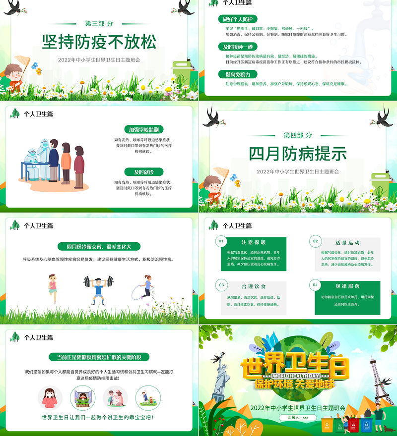 清新卡通2022年中小學生世界衛生日主題班會PPT模板
