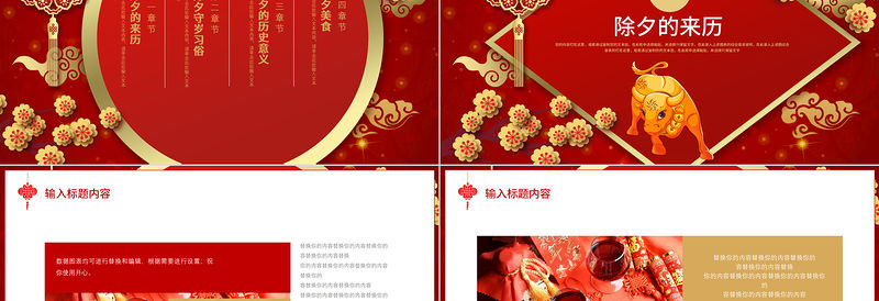 工圖網提供牛年春節除夕夜PPT模板供會員免費下載。更多精彩黨課PPT素材,盡在工圖網。