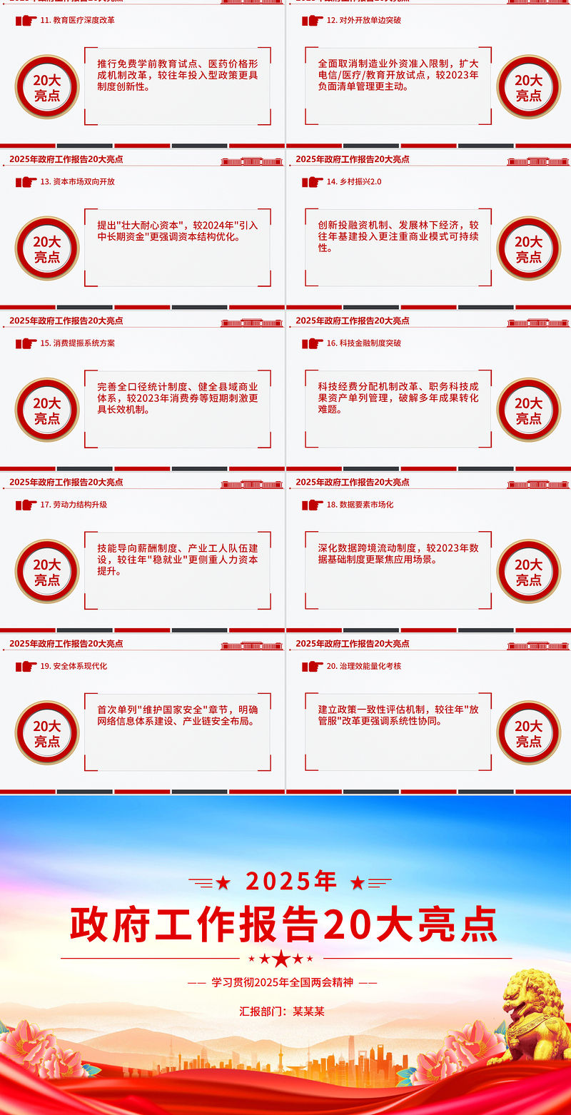 政府工作報告20大亮點—— 學習貫徹2025年全國兩會精神 ——匯報部門:某某某