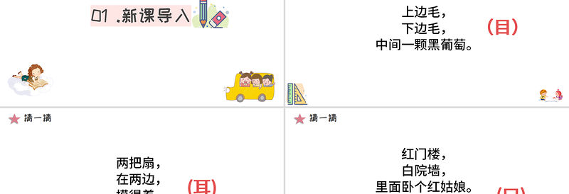 做游戲:讀出生字,并做一做相應動作。口耳目足手