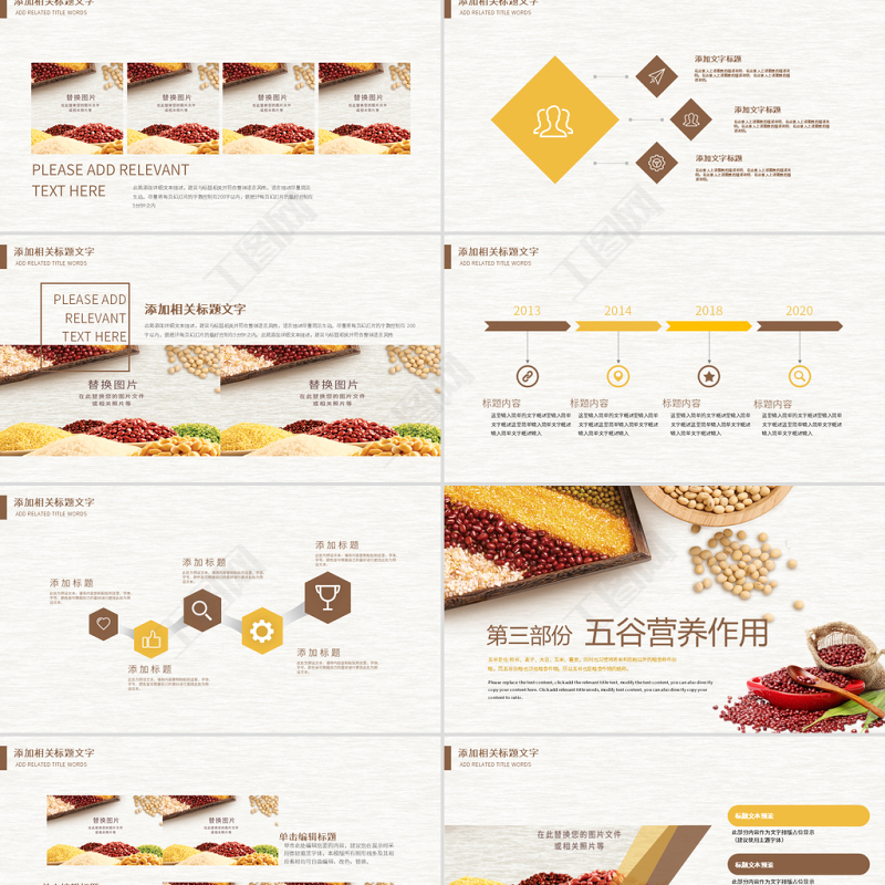 原創營養五谷雜糧農產品介紹宣傳匯報PPT模板-版權可商用