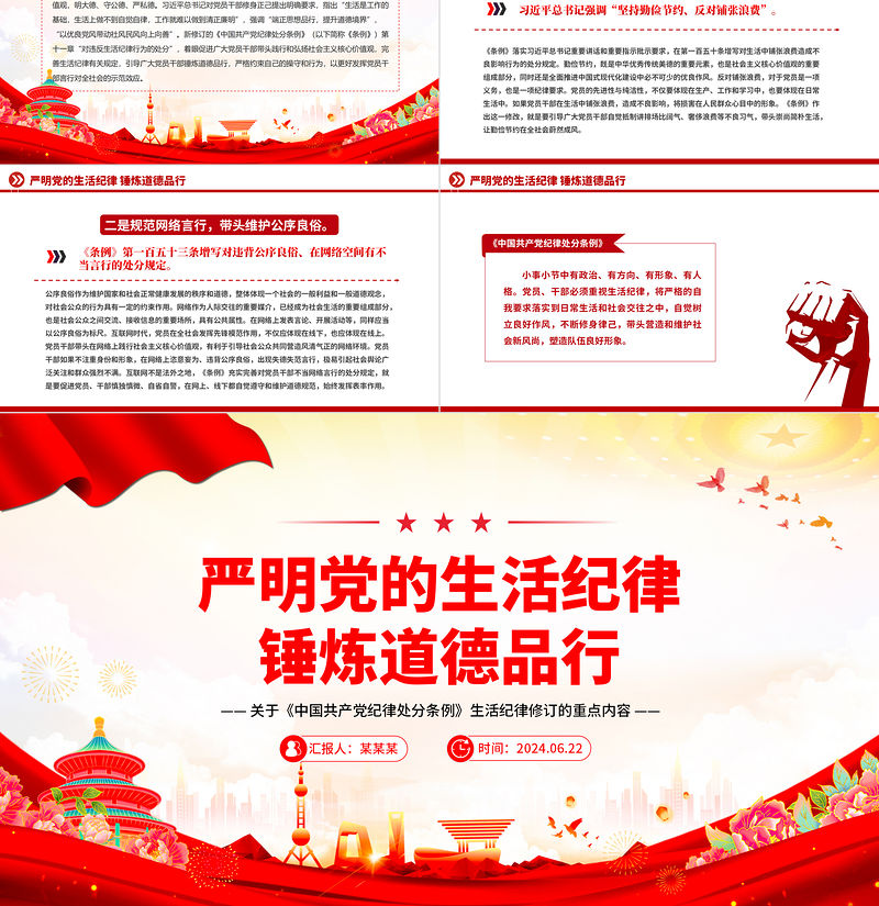 嚴明黨的生活紀律錘煉道德品行PPT精美簡潔黨紀學習教育黨課 Array