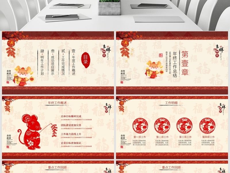 2020年,贏戰鼠年,回首2019,展望2020,新年計劃,述職報告,ppt,模板,動態,喜慶,業績,銷售部,市場部,剪紙,元旦,賀歲,工作總結,年終總結,工作計劃 Array