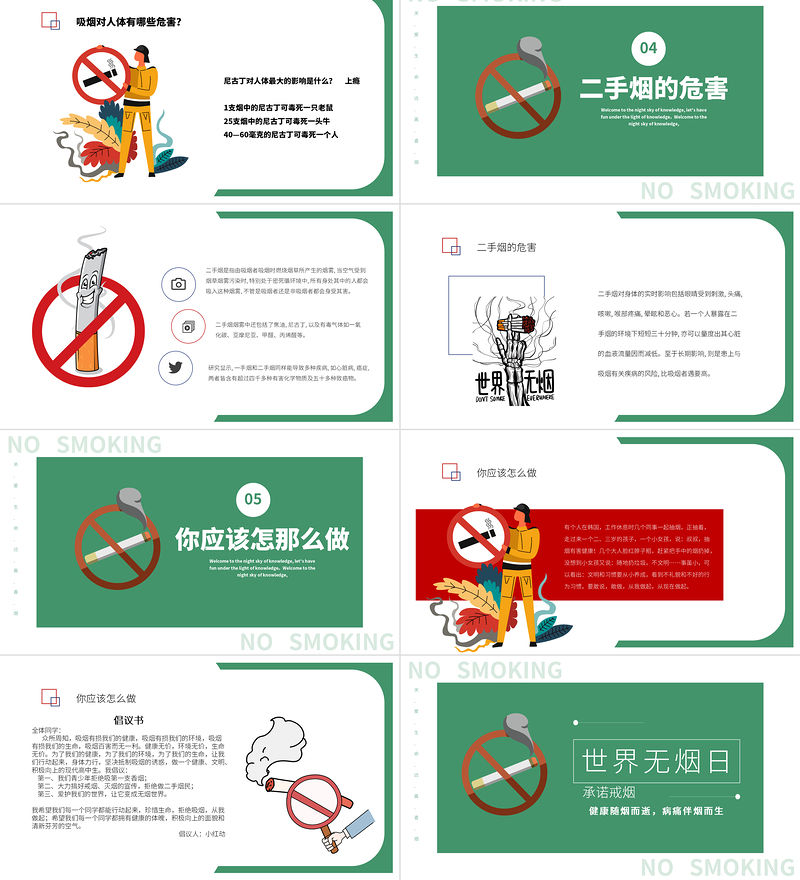2022世界無煙日PPT禁煙戒煙世界無煙日主題班會課件模板