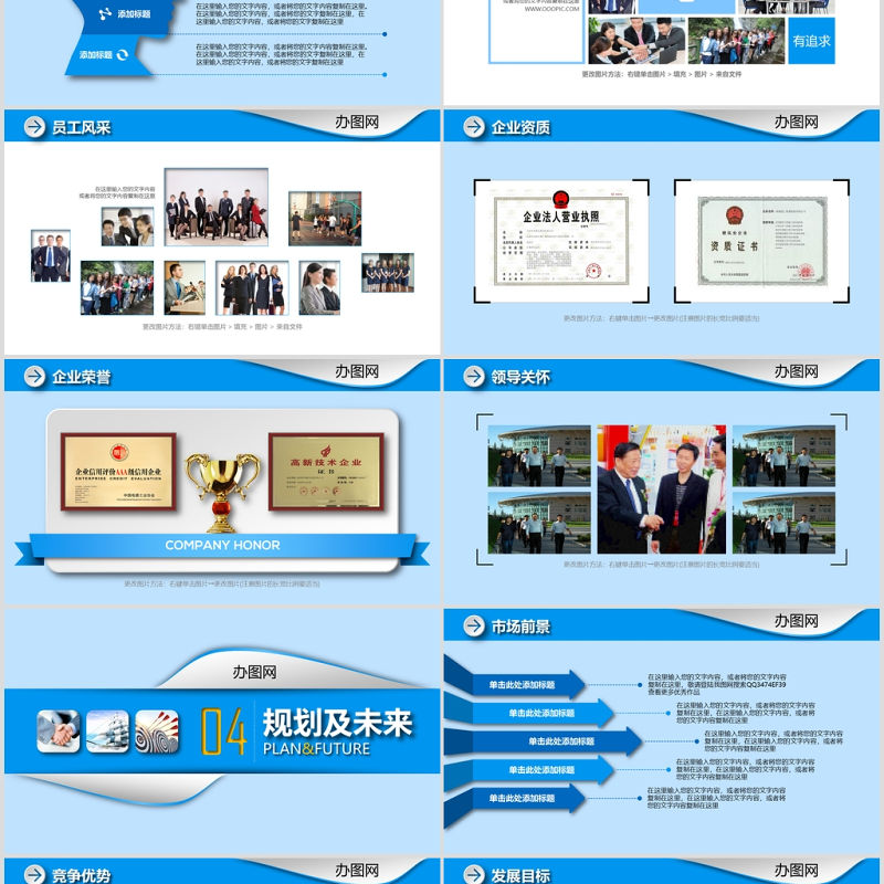 企業榮譽COMPANY HONOR更改圖片方法:右鍵單擊圖片→更改圖片(注意圖片的長寬比例要適當)辦圖網