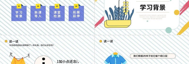 ,戴帽穿新衣。讀一讀我們根據i的樣子給它編個順口溜:i i i