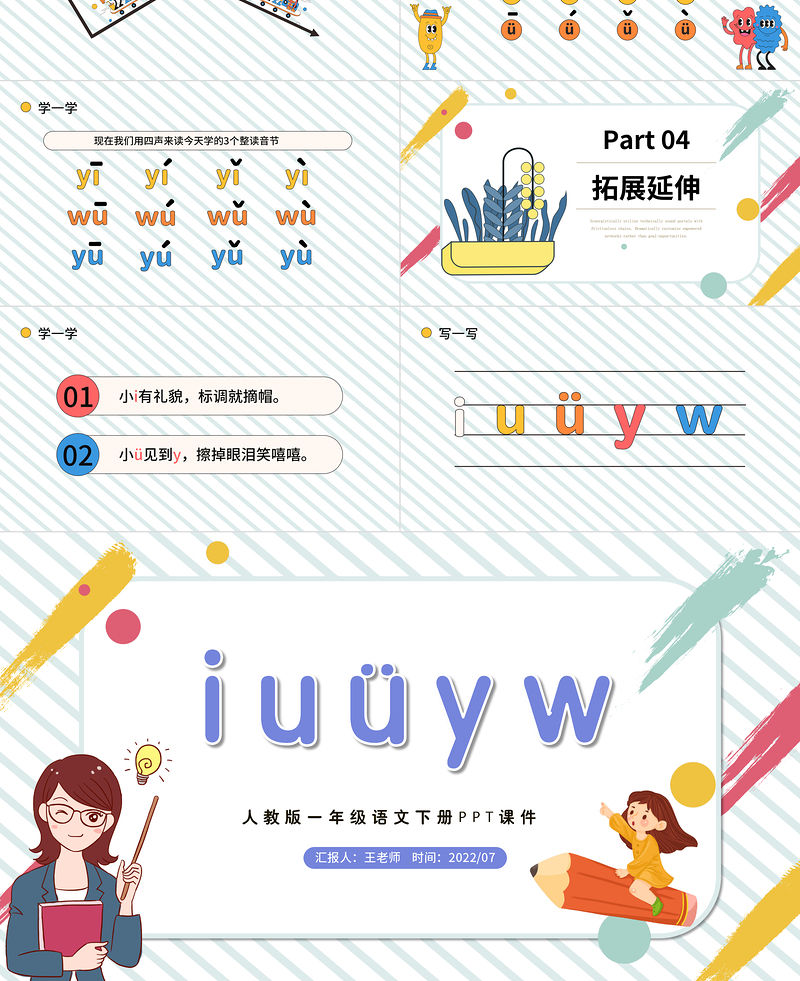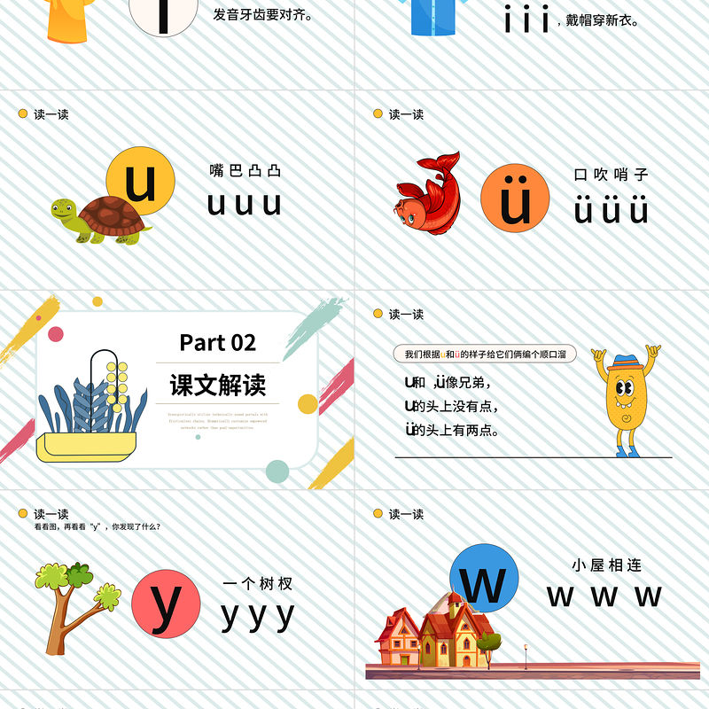 工圖網提供2022i u ü y wPPT漢語拼音小學一年級語文上冊人教版教學課件供會員免費下載。更多精彩黨課PPT素材,盡在工圖網。