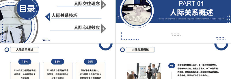 PART 01人際關(guān)系概述The user can demonstrate on a projector or computer or print the it into a film to be used in a wider field