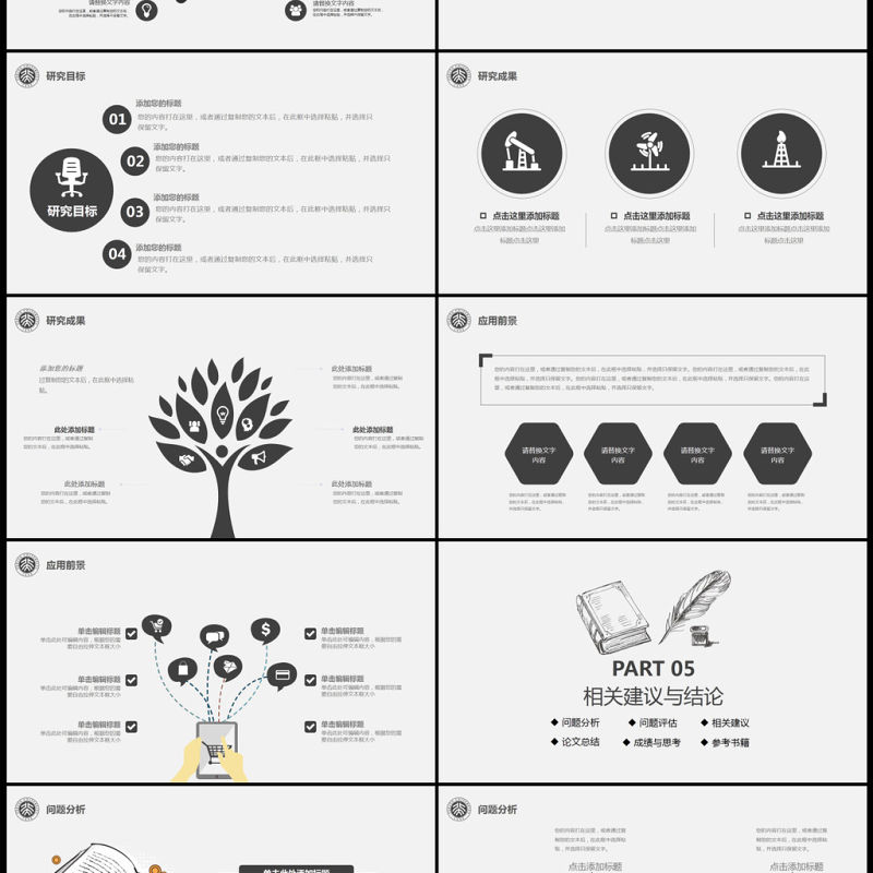 黑色嚴謹開題報告畢業(yè)論文答辯PPT模板 Array