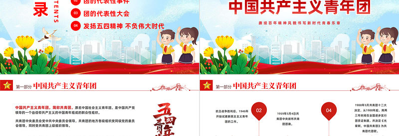 2023建團101周年PPT國潮風賡續百年精神風貌書寫新時代青春樂章共青團建團101周年專題課件模板下載