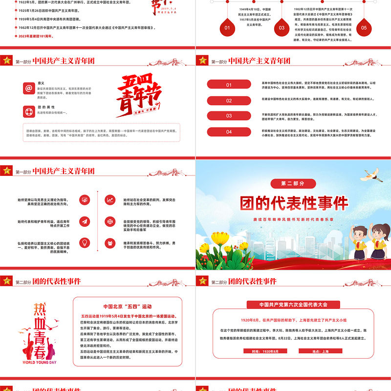 2023建團101周年PPT國潮風賡續百年精神風貌書寫新時代青春樂章共青團建團101周年專題課件模板下載 Array