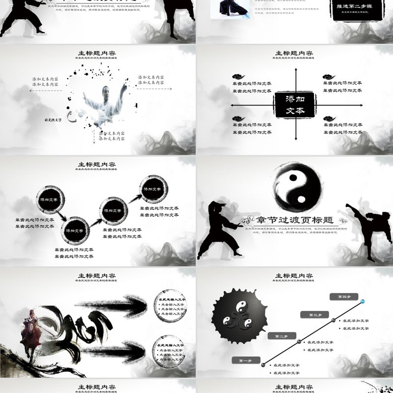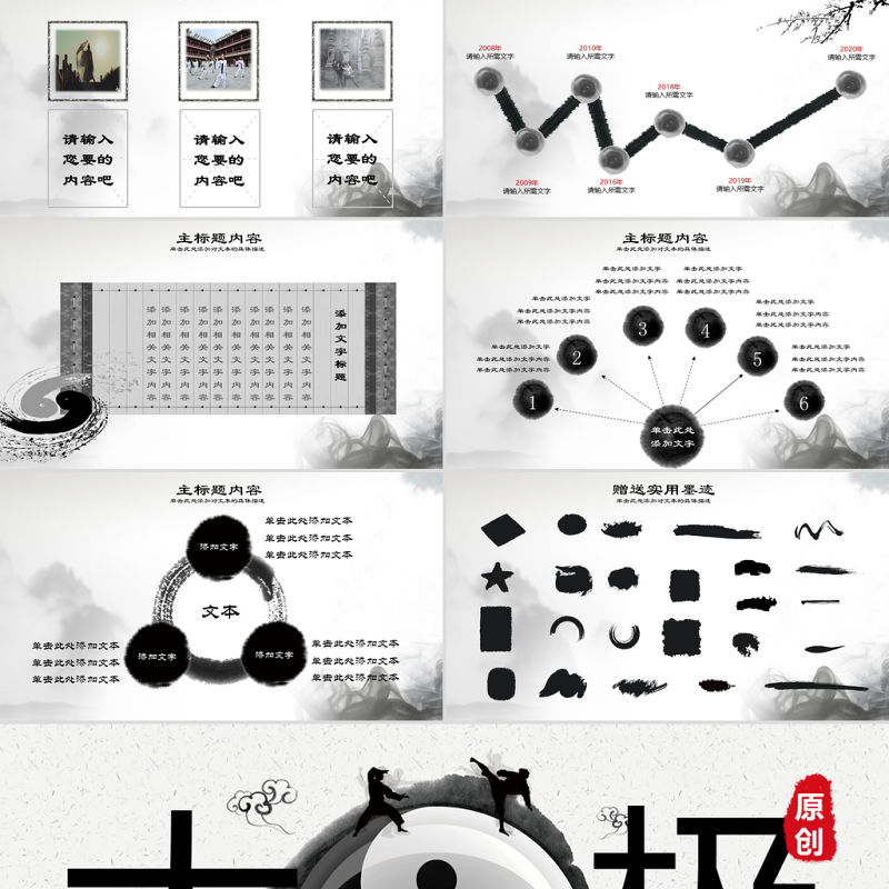 原創太極八卦中國風傳統文化傳統武術PPT模板-版權可商用