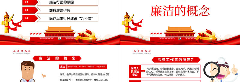 廉潔行醫PPT2022年醫療衛生行業廉潔自律培訓專題黨課課件模板