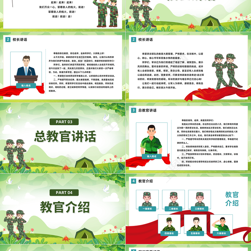 2023軍訓動員大會PPT卡通風大學生軍訓動員大會主題班會課件模板
