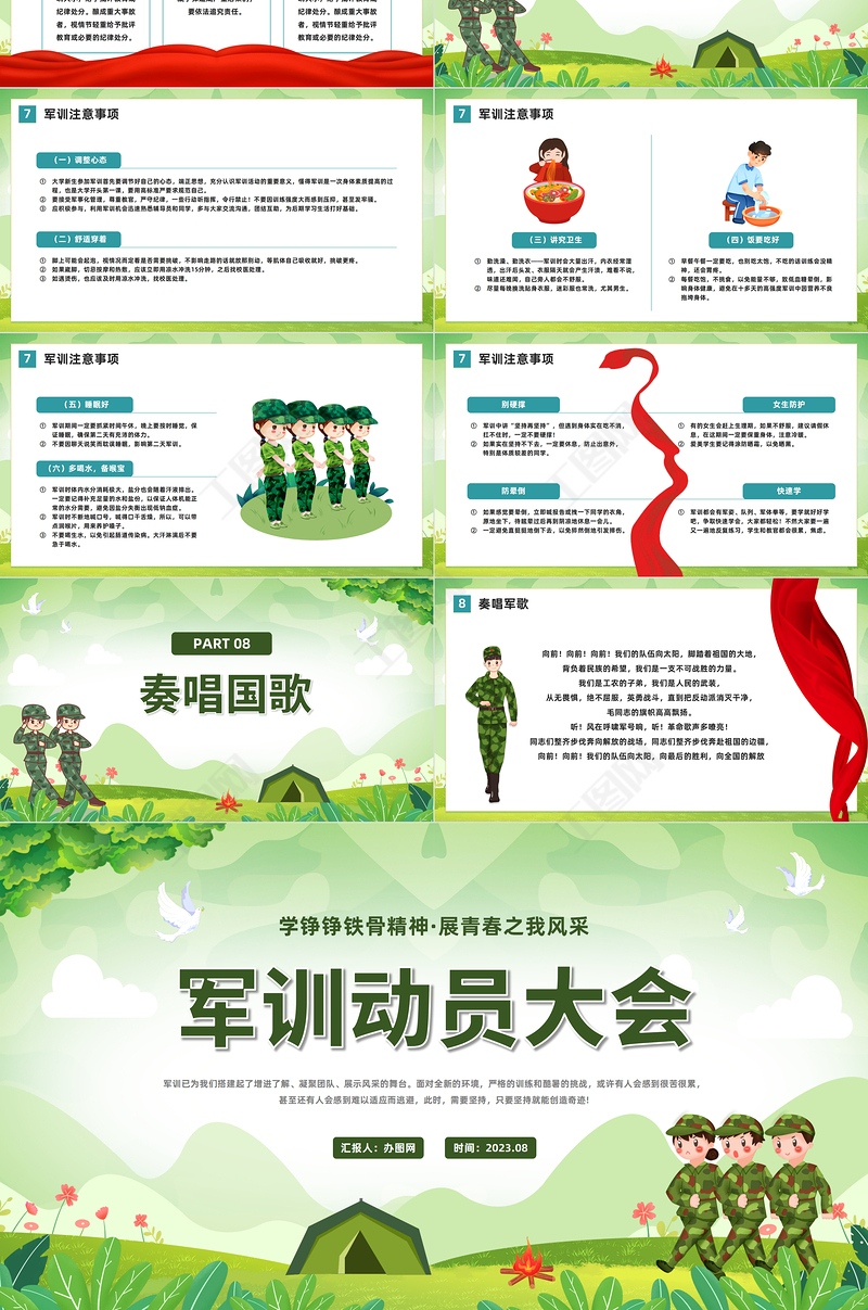 工圖網提供2023軍訓動員大會PPT卡通風大學生軍訓動員大會主題班會課件模板供會員免費下載。更多精彩黨課PPT素材,盡在工圖網。