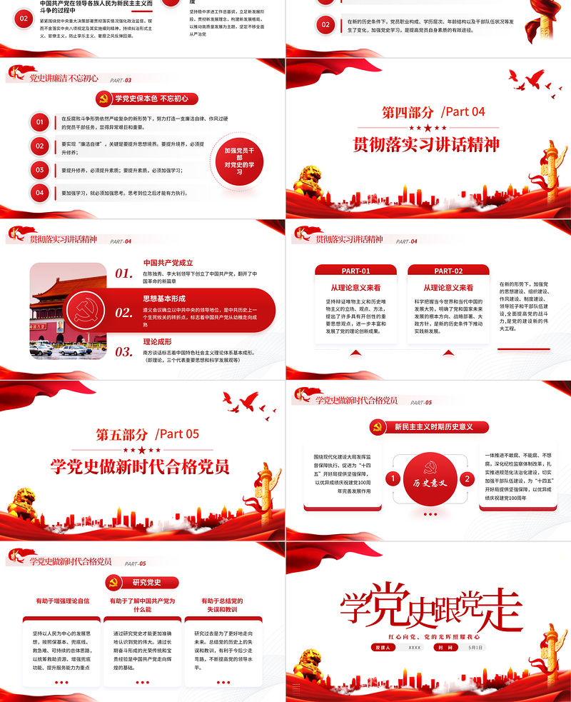 學黨史跟黨走PPT紅色大氣風黨員干部學習教育專題黨課課件模板