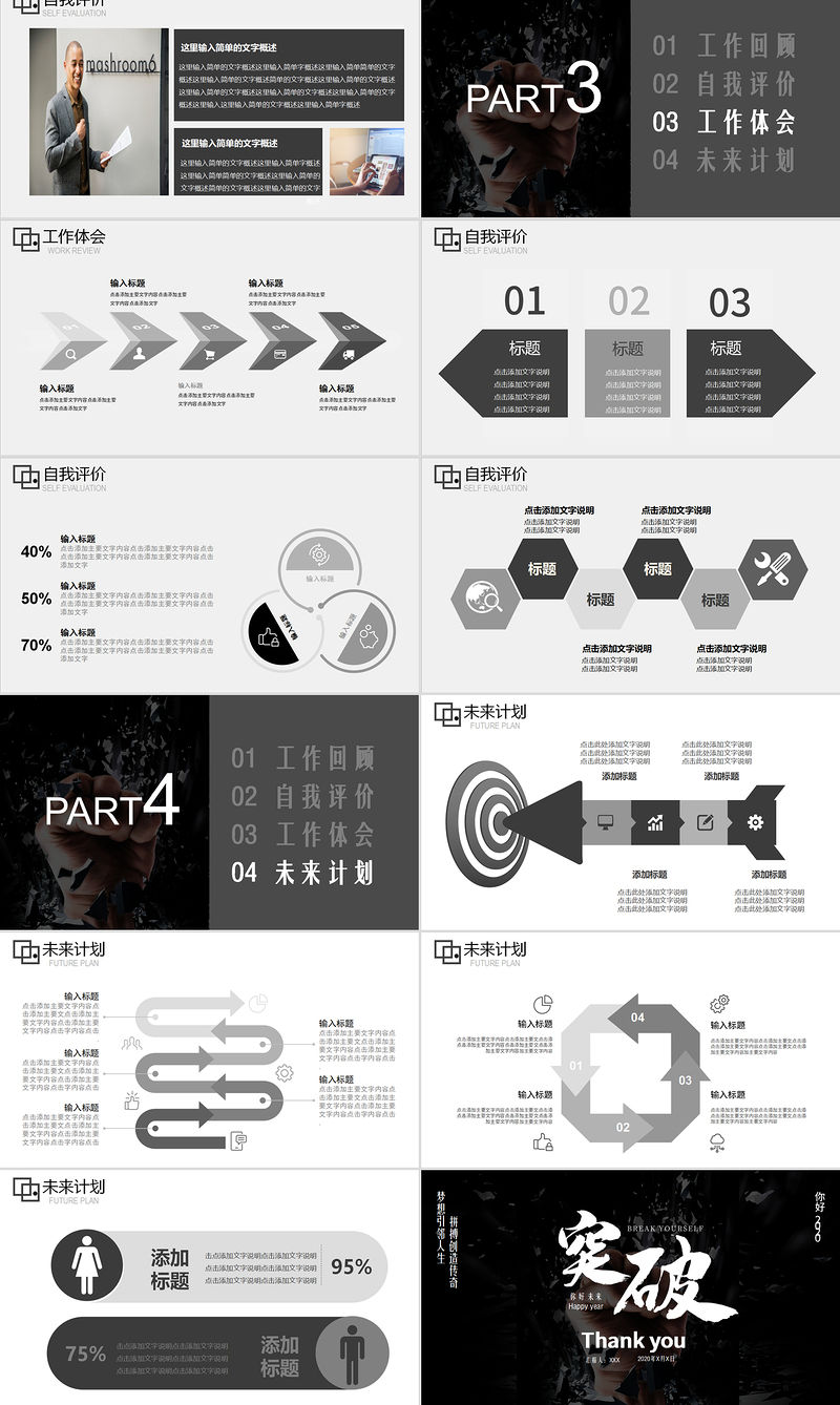 暗黑簡(jiǎn)約風(fēng)突破自我企業(yè)文化宣傳工作總結(jié)計(jì)劃ppt模板 Array
