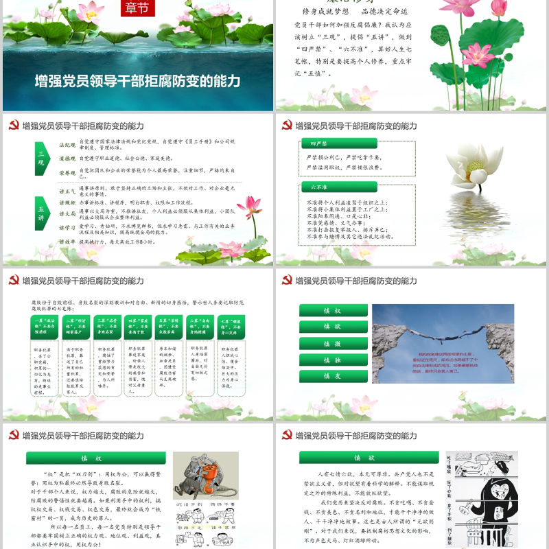 廉政黨課PPT清新中國風黨員干部清正廉明廉潔反腐倡廉廉潔從業黨員教育課件