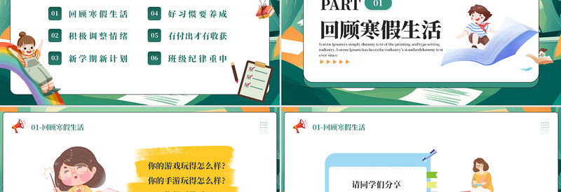目 錄CONTNENTS01回顧寒假生活02積極調整情緒03新學期新計劃04好習慣要養成05有付出才有收獲06班級紀律重申