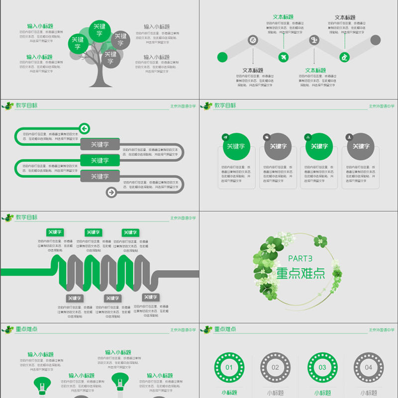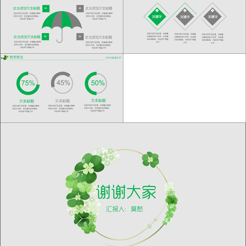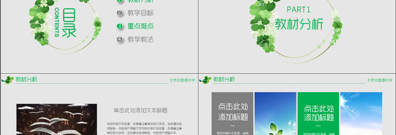 綠色清新教師說課教育教學公開課通用PPT模板包含