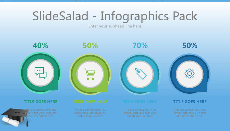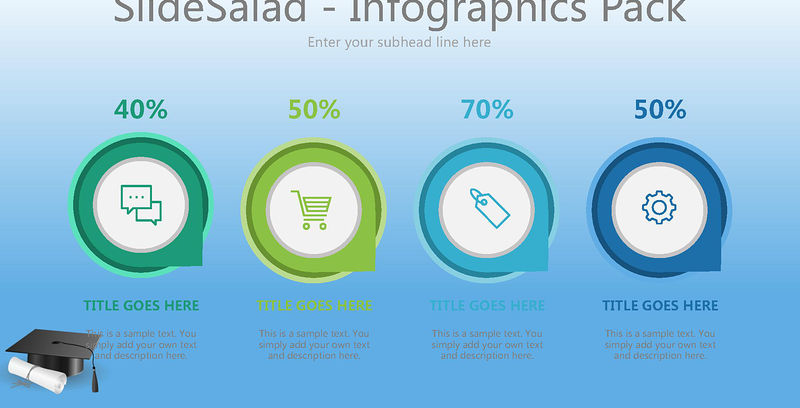 Enter your subhead line hereSlideSalad - Infographics PackTITLE GOES HEREThis is a sample text. You simply add your own text and description here. This text is fully editable. It can be replaced with your own style. 40%TITLE GOES HEREThis is a sample text. You simply add your own text and description here. This text is fully editable. It can be replaced with your own style. 50%TITLE GOES HEREThis is a sample text. You simply add your own text and description here. This text is fully editable. It can be replaced with your own style. 70%