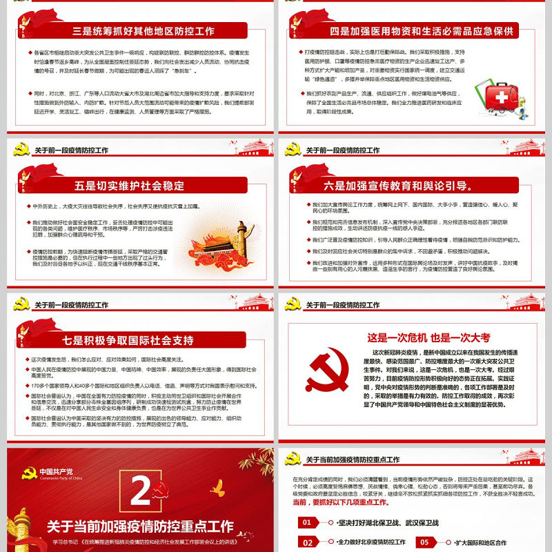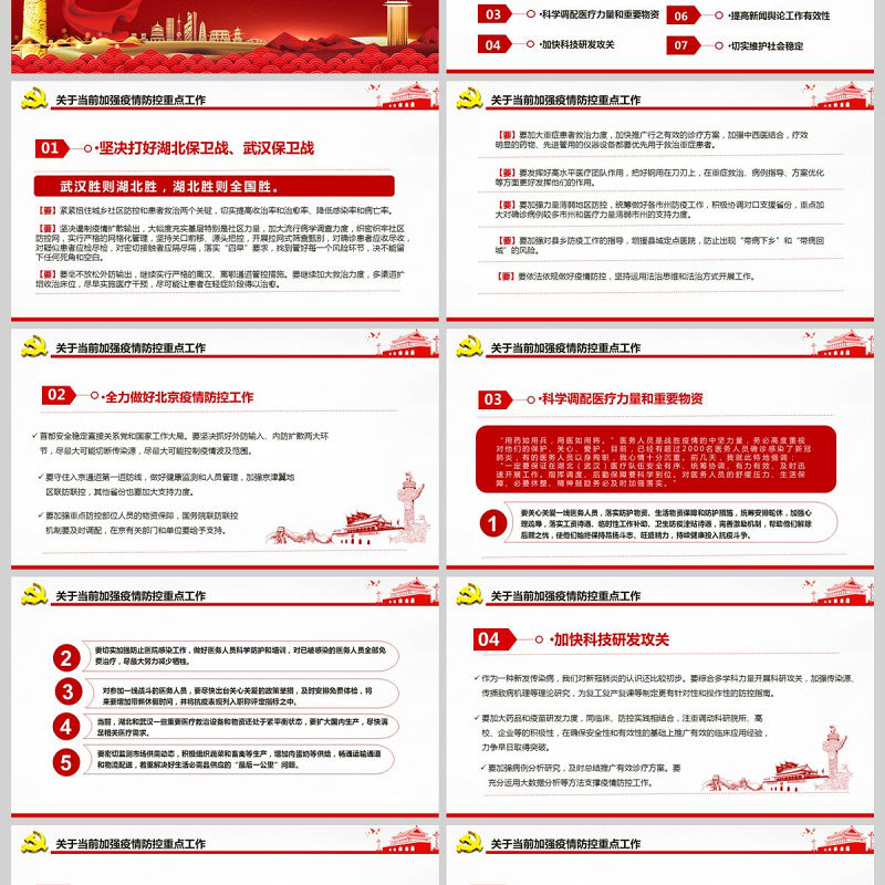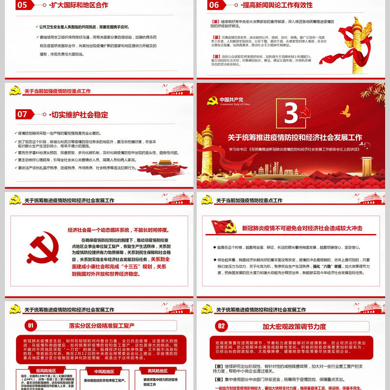紅色黨政在統(tǒng)籌推進新冠肺炎疫情防控和經濟社會發(fā)展工作部署會議上的講話PPT模板 Array