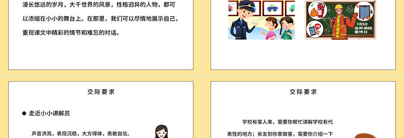 小學學科網 xuekeedu.com小學學科網 xuekeedu.com小學學科網 xuekeedu.com小學學科網 xuekeedu.com 學校有客人來,需要你幫忙講解學校有代表性的地方;親友到你家做客,需要你介紹一下周邊的環境;暑假開始了,博物館需要志愿講解員……選擇一個情境,做一名小講解員。交際要求