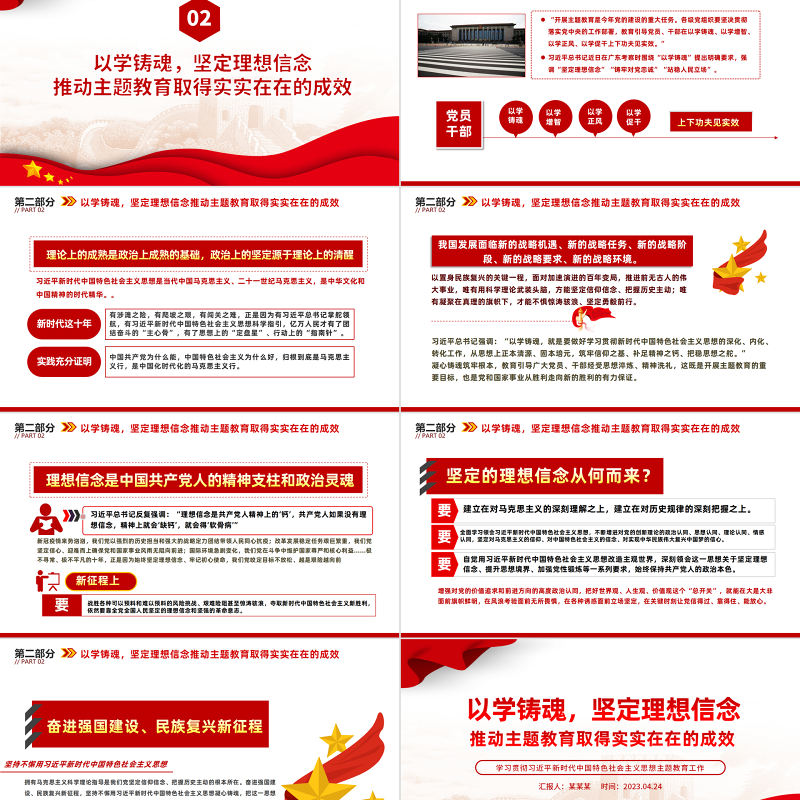 2023以學鑄魂堅定理想信念推動主題教育PPT簡潔黨政風學習貫徹相關領導新時代中國特色社會主義思想主題教育專題黨課課件模板 Array
