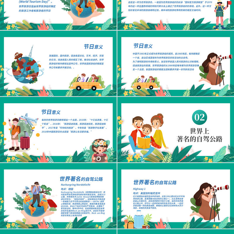 2022世界旅游日PPT卡通風一起去旅行世界旅游日介紹課件模板