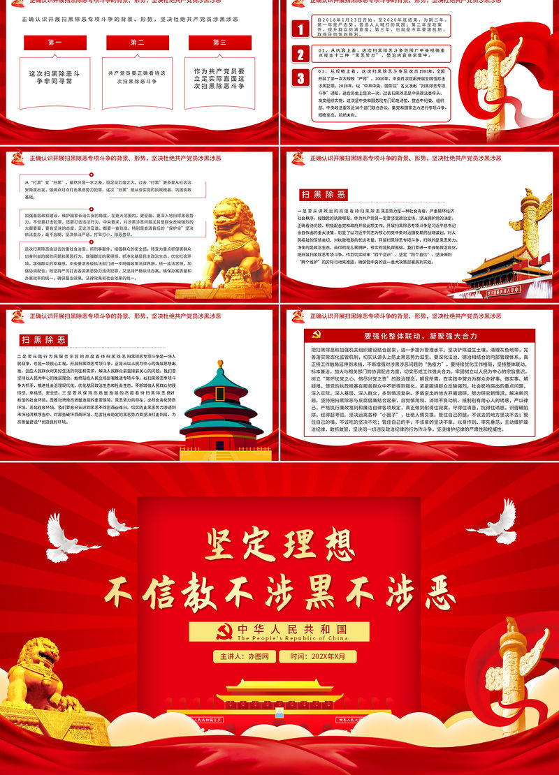工圖網提供黨員堅定理想不信教不涉黑涉惡主題PPT模板供會員免費下載。更多精彩黨課PPT素材,盡在工圖網。