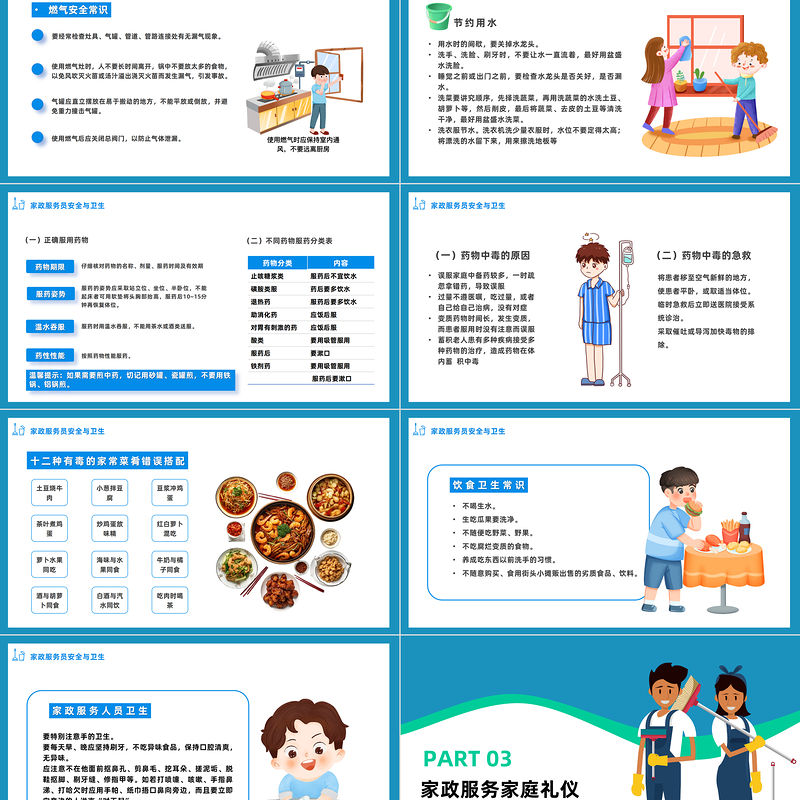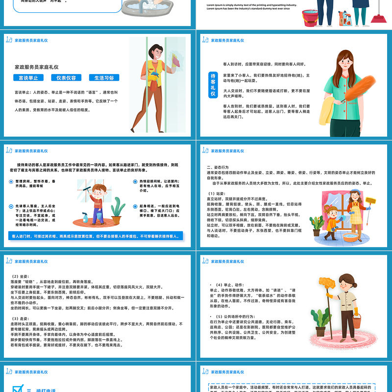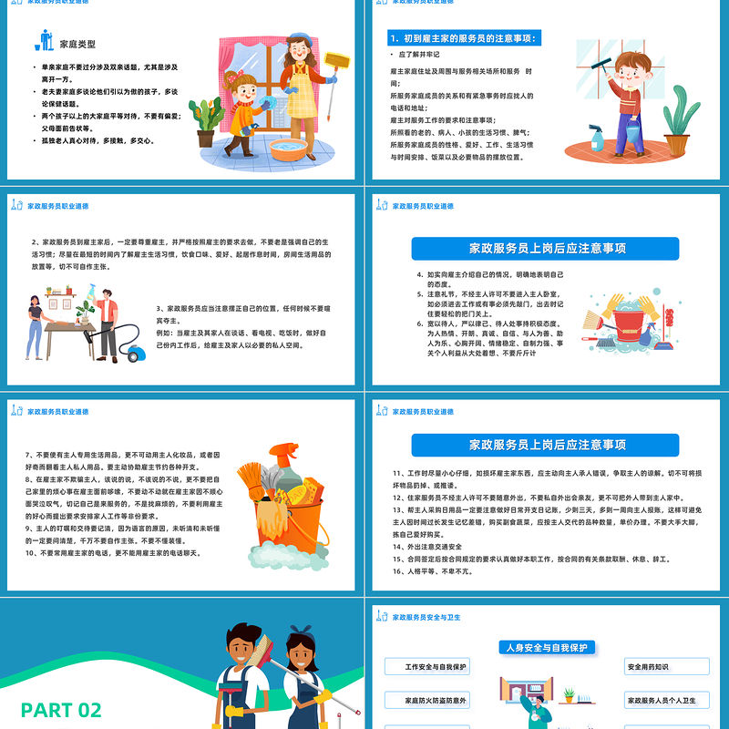 匯報|報告PPT > 2023家政服務崗位培訓PPT藍色卡通風家政服務崗位培訓課件模板.PPTX