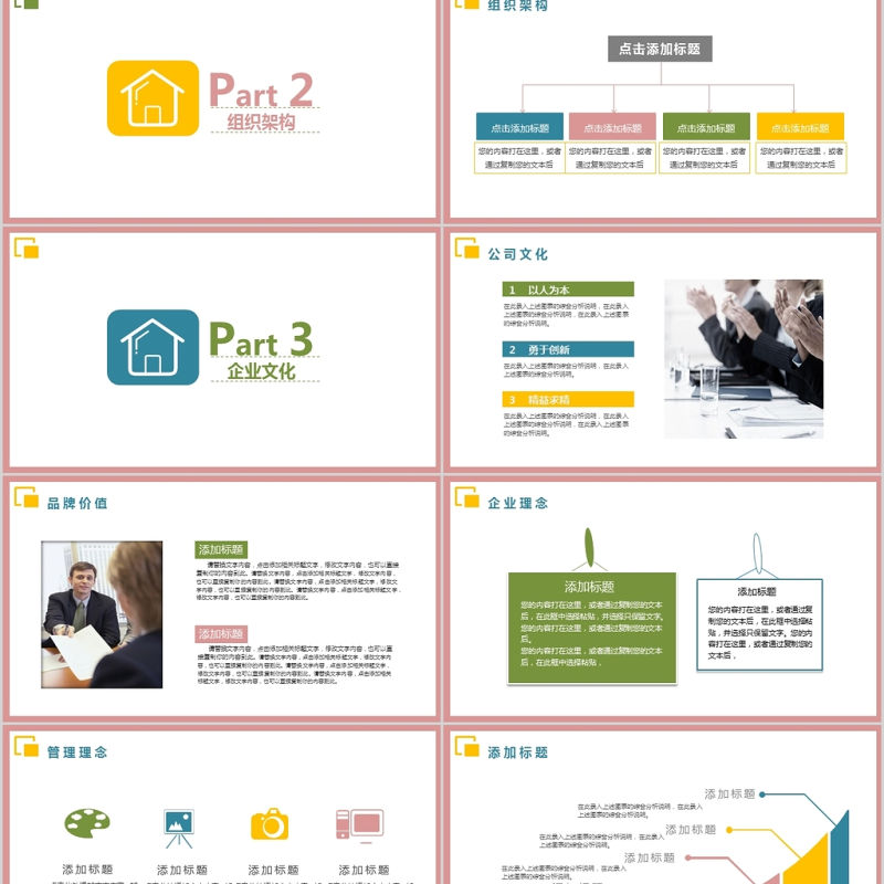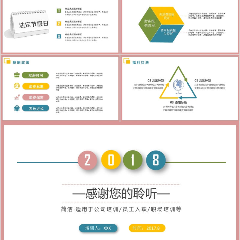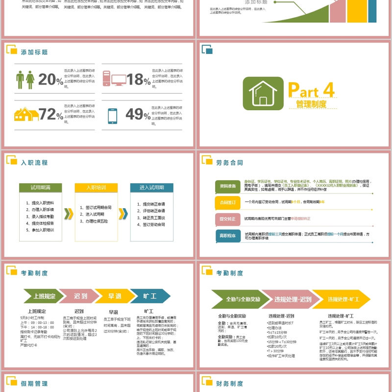 彩色簡約大氣新員工入職培訓手冊ppt模板 Array