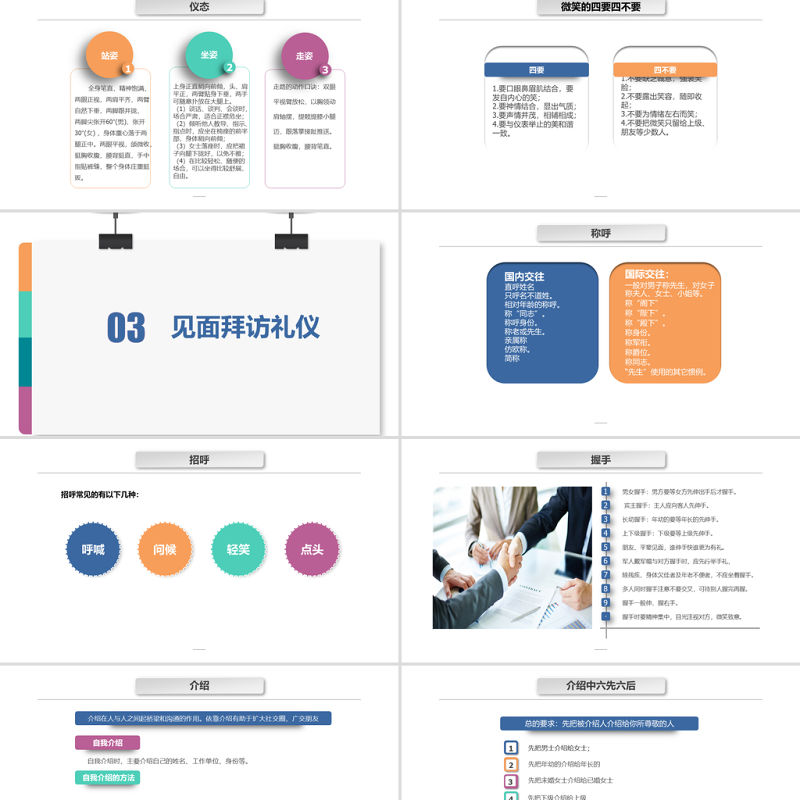 2021公關禮儀PPT藍色簡約商務禮儀培訓PPT模板