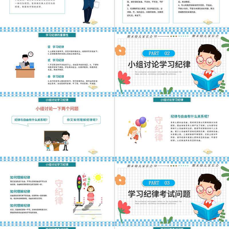 工圖網提供主題班會學習與紀律PPT清新卡通班會通用課件供會員免費下載。更多精彩黨課PPT素材,盡在工圖網。