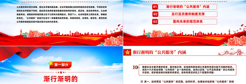 實現公共服務制度化PPT紅色簡潔學習教育黨課課件模板 Array