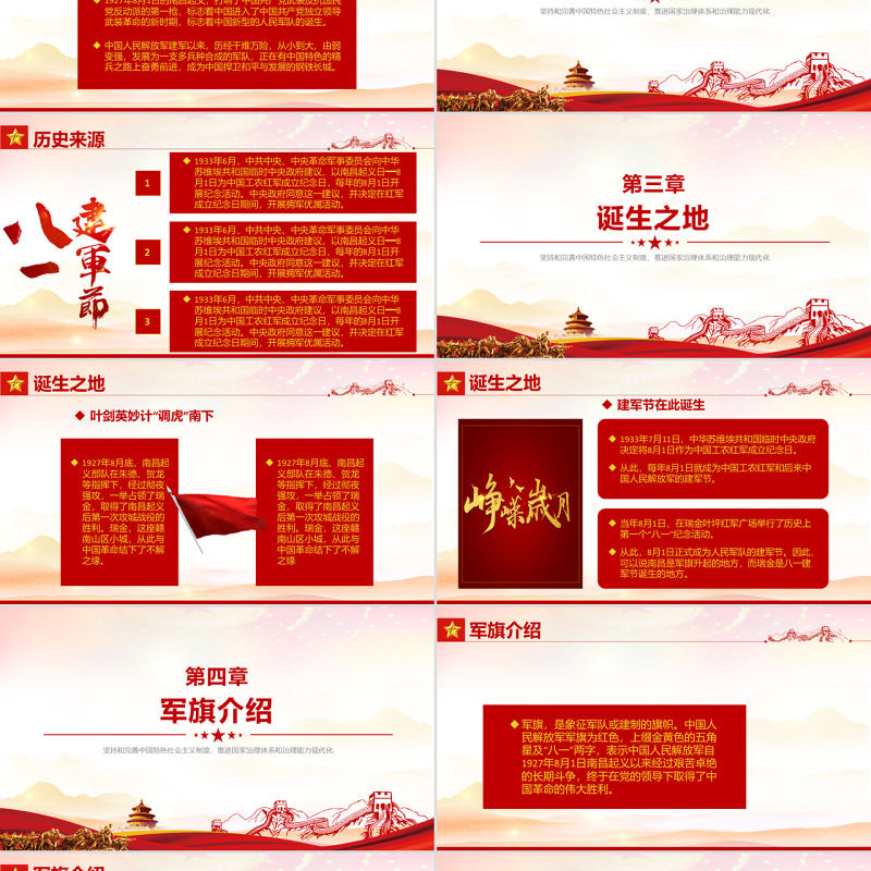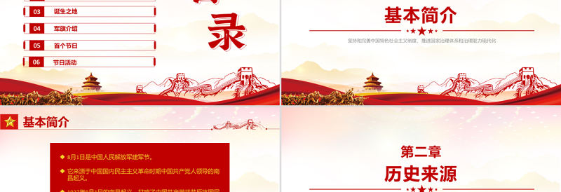 紀念八一建軍節PPT紅色大氣風2022年建軍節95周年愛國主義授課輔導國防教育專題黨課課件模板