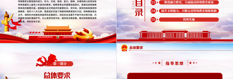 總體要求指導思想深入貫徹落實黨的十九大和十九屆歷次全會精神,全面貫徹黨的教育方針,落實立德樹人根本任務,遵循特殊教育規(guī)律,以適宜融合為目標,按照拓展學段服務、推進融合教育、提升支撐能力的基本思路,加快健全特殊教育體系,不斷完善特殊教育保障機制,全面提高特殊教育質量,促進殘疾兒童青少年自尊、自信、自強、自立,實現(xiàn)最大限度的發(fā)展,切實增強殘疾兒童青少年家庭福祉,努力使殘疾兒童青少年成長為國家有用之才。